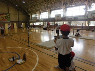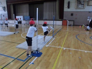 4年生体育では「走り高跳び」に取り組んでいます。
