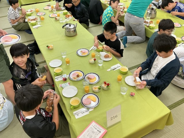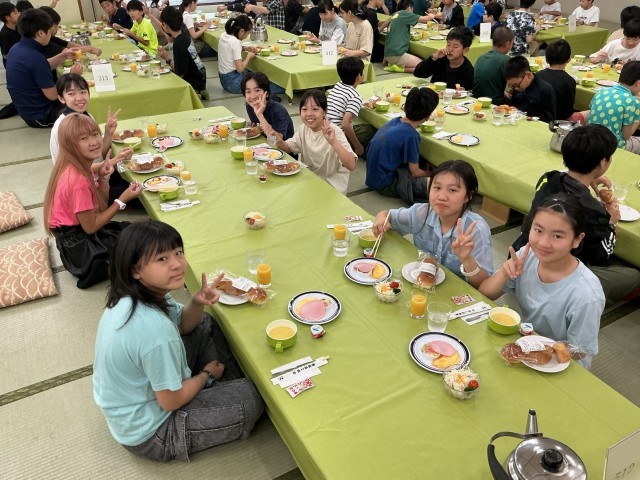【修学旅行】朝食の時間 公開日 2025/10/01 更新日 2025/10/01 6年 おおぶっ子6年生は、朝からみんな元気です。旅館の1階中に響き渡るくらい、「いただきます!」の声がこだましていました。 6年生