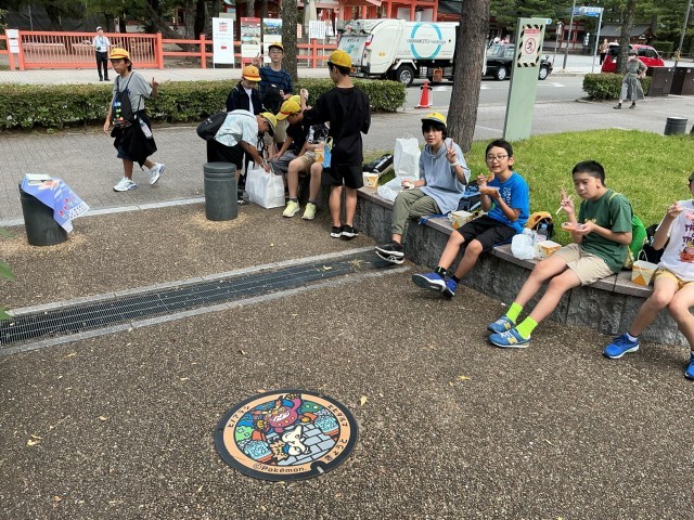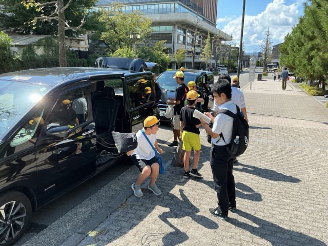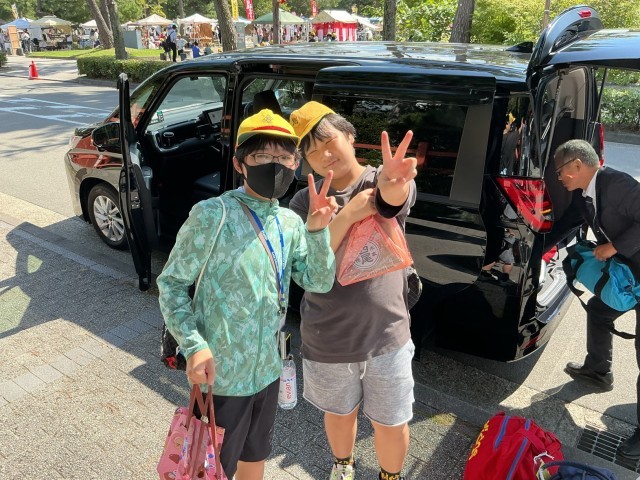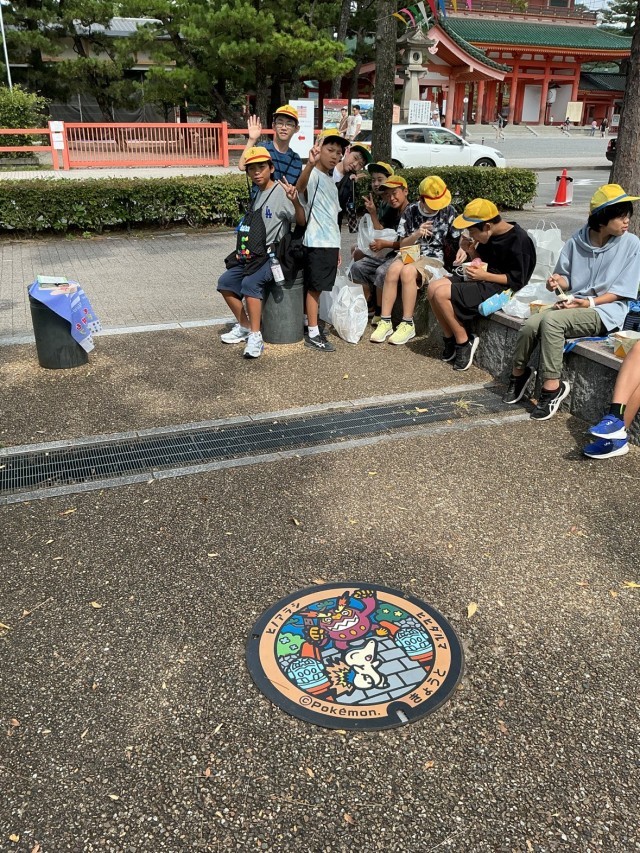 【修学旅行】タクシー分散研修終了 公開日 2025/10/01 更新日 2025/10/01 6年 自分たちで考えた研修先を巡るタクシー分散研修が終わりました。みんな満足げな表情ばかり。家に着いたらお土産話をたくさん聞いてあげてください。一行は予定より10分早く、13:00に平安神宮を出発しました。途中、草津PA、鈴鹿PAでトイレ休憩を挟みながら、学校へ戻ります。 +3 6年生