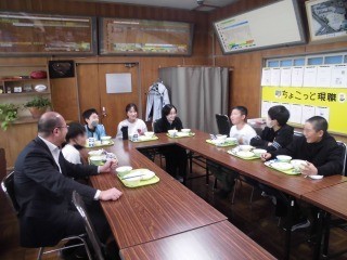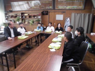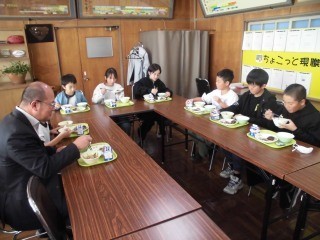 給食の時間に、校長室にて児童会役員さんのランチミーティングを行いました。