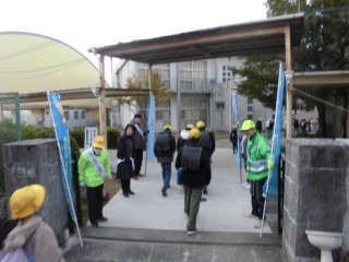 2学期最後の今日、登校時間にあわせて、地域の多くの方々によるあいさつ運動が行われました。