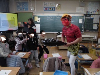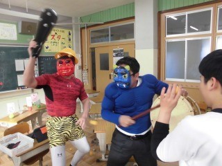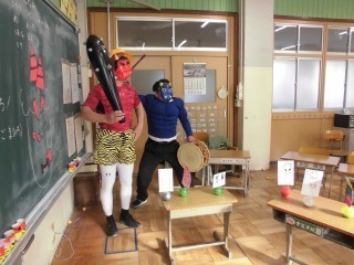 節分には少し早いですが、1年生の教室とわかくさ学級の教室に「鬼」が現れました。