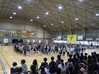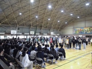 最後は先輩から後輩へ、思いを託す校旗の引き継ぎ式。