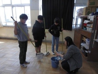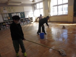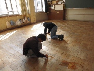 自分たちの教室のワックスがけです。