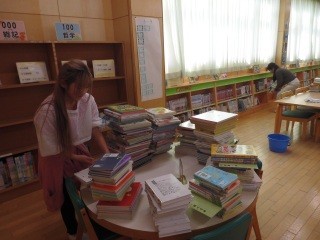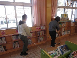 図書室の掃除や本の整頓も行いました。