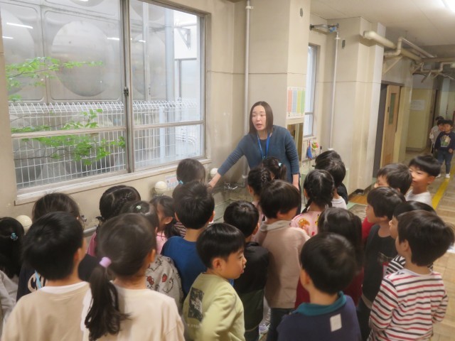 1年生ではぞうきんの使い方、水道の使い方などを担任が説明していました。