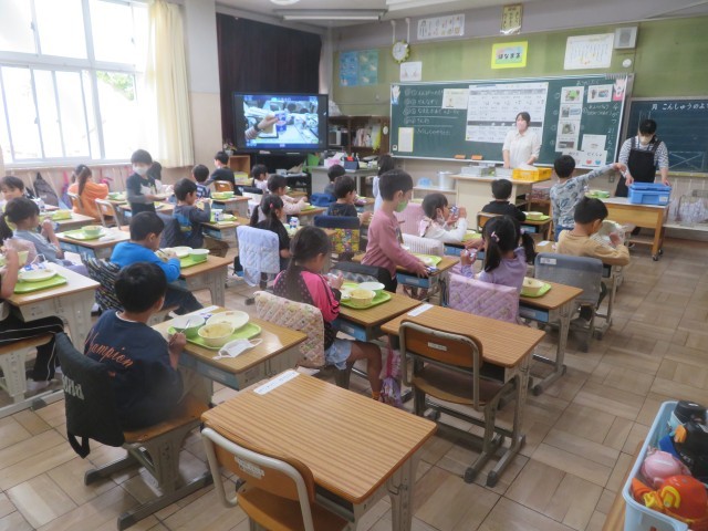 1年生は初めての給食でした。