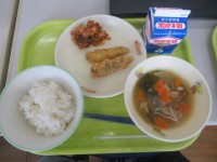 明日は、あじフリッター、実だくさん汁ですよ。