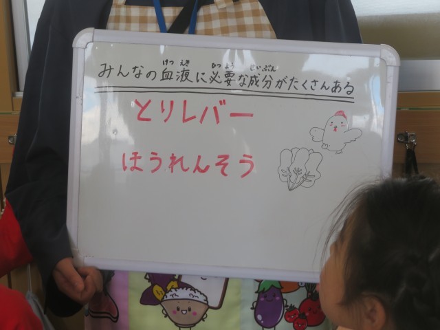 「みんなの血液に必要な成分がたくさんある」⇒とりレバー、ほうれんそう(ビビンバに入ってましたね!)