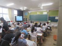 4年生も教育実習生と給食を食べていました。4年生ともなると、給食の準備もスムーズ...
