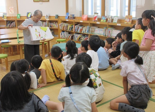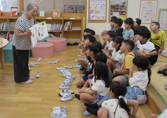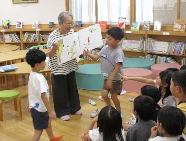 読み聞かせ 1年 公開日 2025/09/24 更新日 2025/09/24 1年 1年生がボランティアの中田さんに読み聞かせをしてもらいました。絵本を何冊か読んでもらいました。みんな熱心に聞き入ったり、時には前に出てきて絵本を指さしたりしていました。自分でも楽しい本を探して読んでみましょう。 +2 1年生