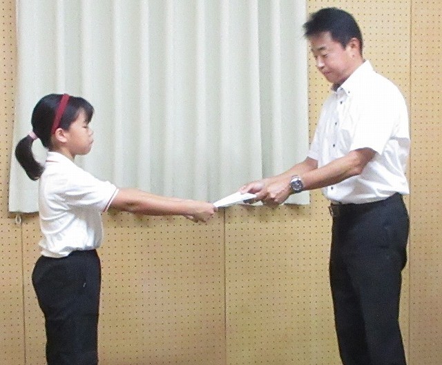 そして、前期の児童会役員の退任のあいさつと、後期の役員の就任のあいさつがありました。
