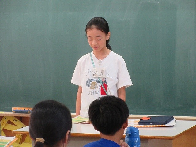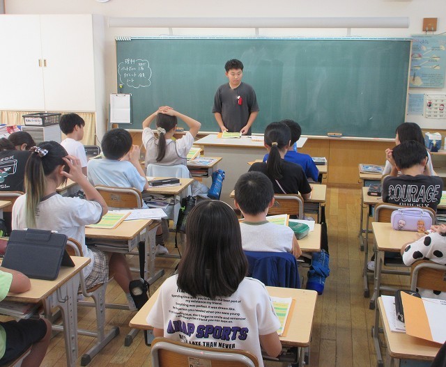 英語の学習 5年 公開日 2025/10/06 更新日 2025/10/06 5年 5年生が英語の学習をしていました。今日はALTがいない英語の授業ですが、英語のスピーチの発表をしました。自分の知り合いや家族の紹介です。みんな上手に英語でスピーチをしていました。紹介はいろいろな場面で使えるので、実際に試してみましょう。 +1 5年生
