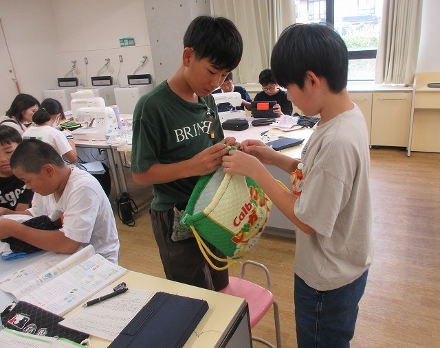 家庭科 6年 公開日 2025/10/07 更新日 2025/10/07 6年 6年生が家庭科でナップサック作りをしています。そろそろ作品が完成したようです。最後の仕上げに、ひもを通したり名前付けのアイロンかけをしたりしました。自分だけのナップサックができました。家でもぜひ使ってくださいね。 +2 6年生