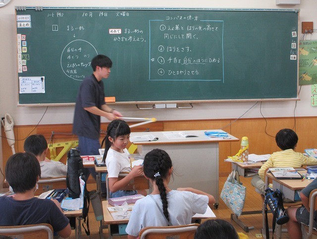 算数 3年 公開日 2025/10/14 更新日 2025/10/14 3年 3年生が算数でコンパスの使い方を学習していました。コンパスで円を描きます。上手に使わないと、きれいな円にならなかったり、円が小さくなってしまったりします。何度も練習して、上手に円が描けるようにしましょう。 +3 3年生