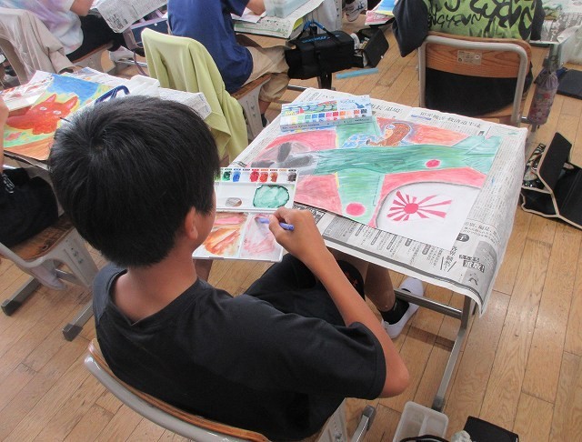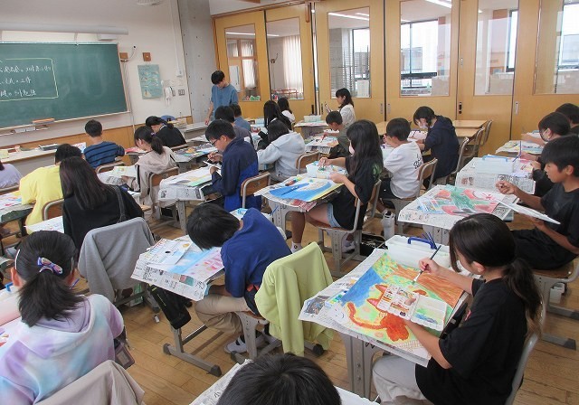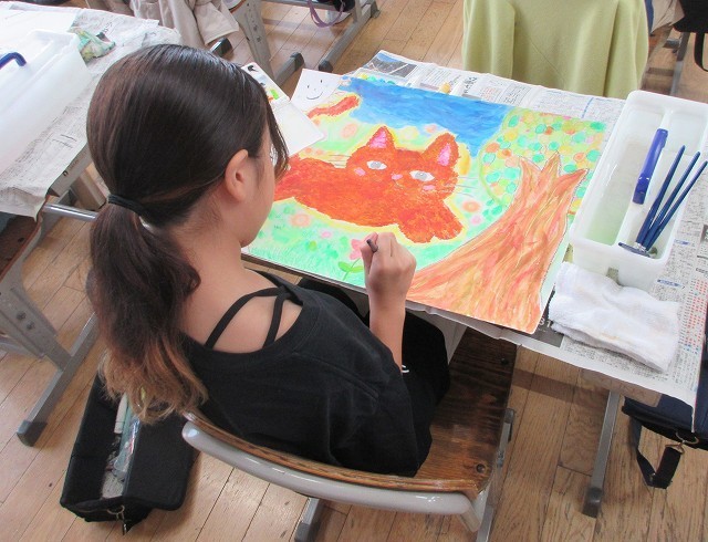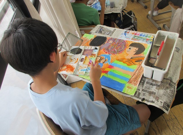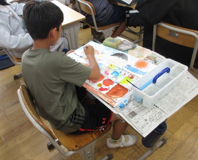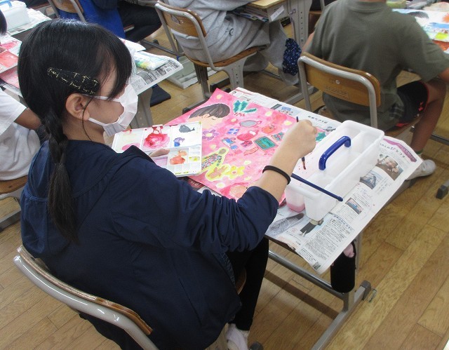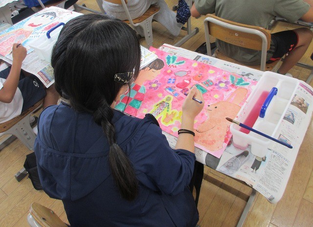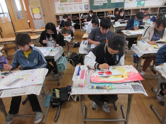 図画工作 6年 公開日 2025/10/15 更新日 2025/10/15 6年 6年生が図工で読書感想画を描いていました。それぞれが読んだ本の中で印象的な場面を描きました。みんな集中して一言もしゃべらずに、最後の仕上げを丁寧に描いていました。きっと良い絵になったことでしょう。 +5 6年生