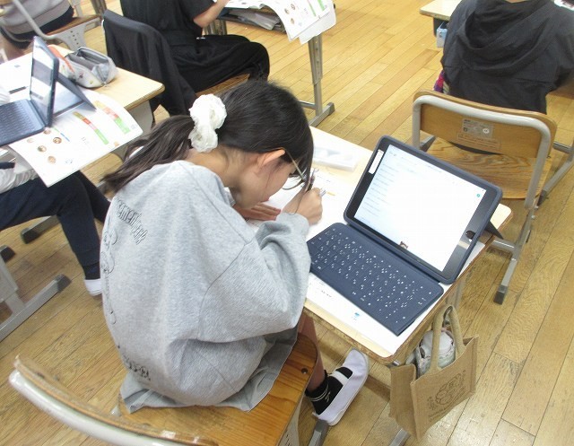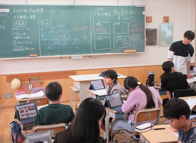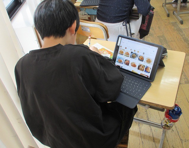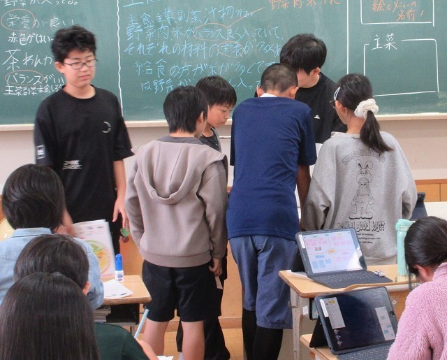 家庭科 6年 公開日 2025/10/21 更新日 2025/10/21 6年 6年生が家庭科で、秋の食材を入れた昼ご飯のメニューを考えていました。きのこなどの山菜を生かしたハンバーグなど、おいしそうなメニューができあがりました。ぜひ、実際に作ってみてほしいです。 +3 6年生