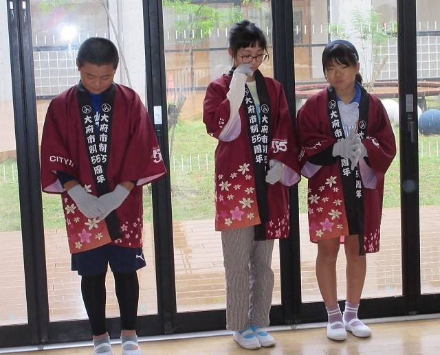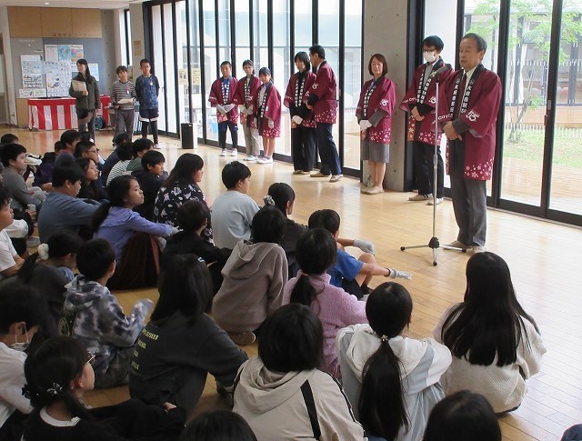 あいにくの雨模様となり、セレモニーは昇降口で行われました。
