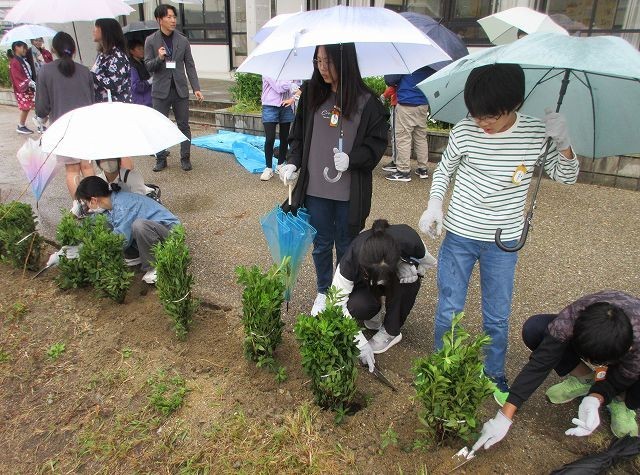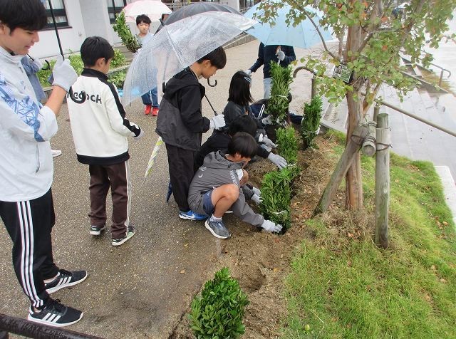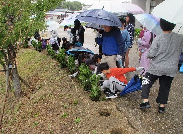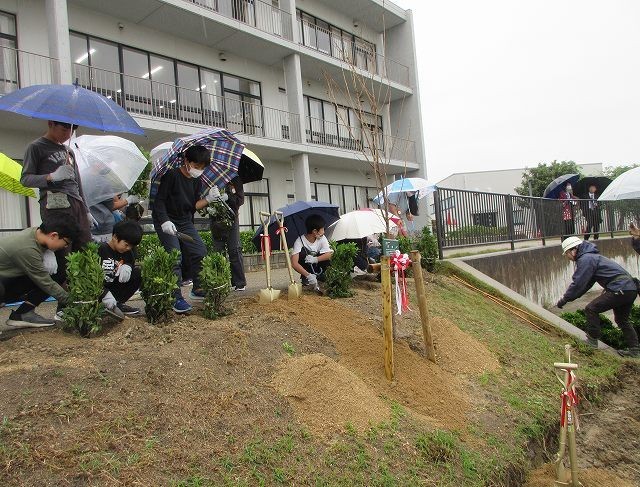 その後、6年生全員でたくさんのツツジを植樹しました。