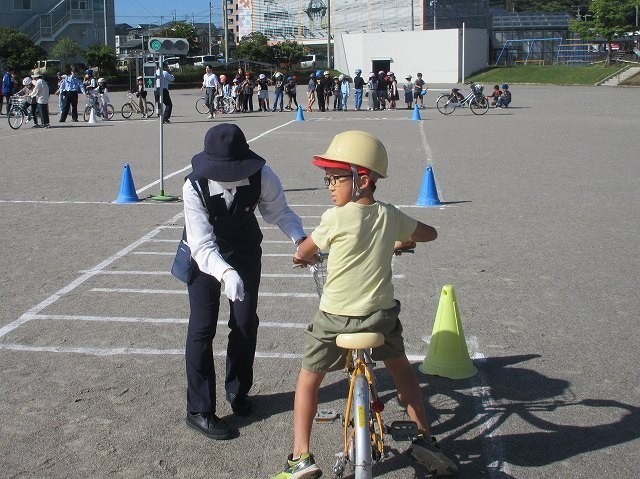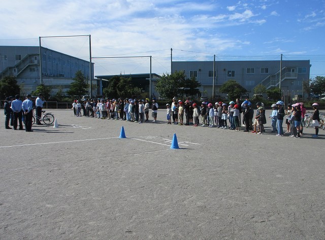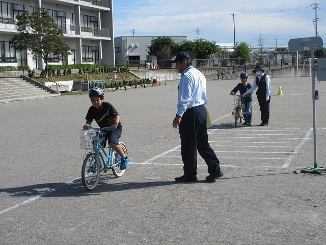 自転車教室 3・5年 公開日 2025/10/23 更新日 2025/10/23 3年 3年生と5年生が交通指導員さんの指導の下、自転車の乗り方を学習しました。自転車の点検の仕方、発進の仕方、見通しの悪い曲がり角の通り方、横断歩道の渡り方などを教えてもらいました。実際に、自転車に乗って走ってみると5年生は乗り慣れていましたが、3年生は発進でよろめいて不安定な人が多いようでした。小学生の自転車の事故も多いので、十分に気をつけて乗りましょう。 +6 3年生