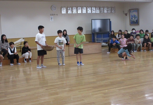 キラキラ発表会の練習 4年 公開日 2025/10/28 更新日 2025/10/28 4年 4年生がなかよしホールで、キラキラ発表会の練習をしていました。国語の教科書の作品を劇にしました。劇中、歌もありなかなかの大作です。どのような劇になるでしょうか。本番が楽しみです。 +1 4年生