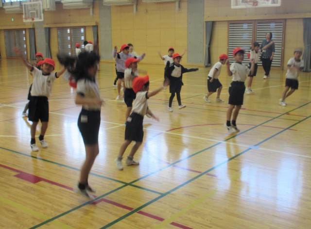 体育 1年 公開日 2025/10/29 更新日 2025/10/29 1年 1年生が体育でダンスを踊っていました。曲に合わせて振り付けた踊りをします。曲はライラックで、みんな元気に踊っていました。 +5 1年生