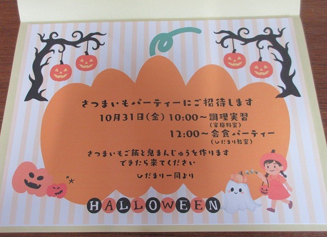 ひだまり 公開日 2025/10/31 更新日 2025/10/31 お知らせ ひだまりでは、畑作りから野菜の栽培まで毎日取り組んできました。その収穫物であるさつまいもを使って調理実習を行いました。 ちょうどハロウィーンの日でもあったので、さつまいもパーティーを計画し、行いました。さつまいもご飯や、鬼まんじゅうなどを作りました。とてもおいしいものが上手にできました。 +2 お知らせ