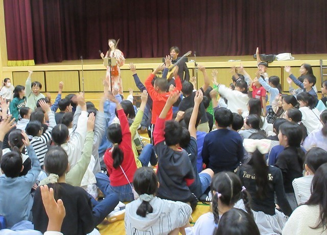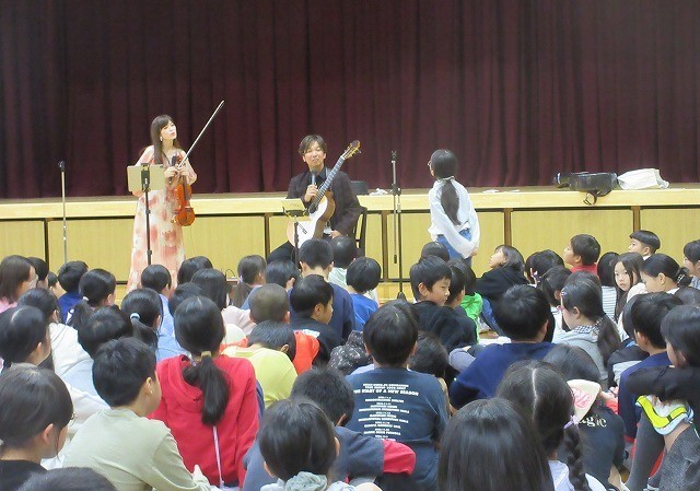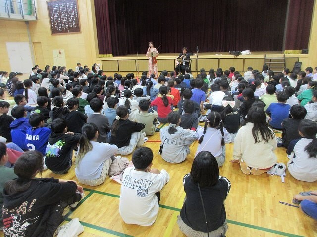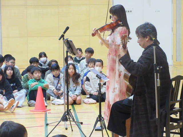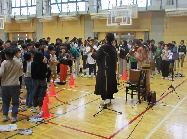 午後、4~6年生は体育館で3年に1回のバイオリンコンサートを聴きました。