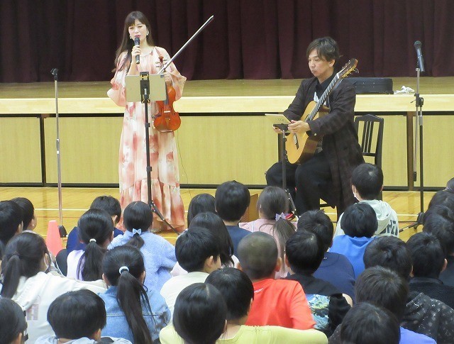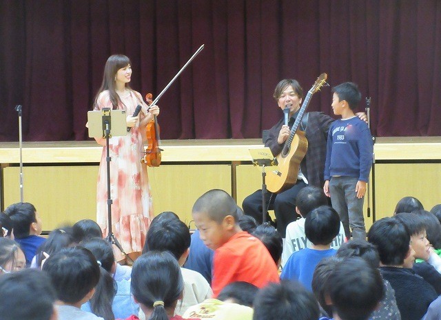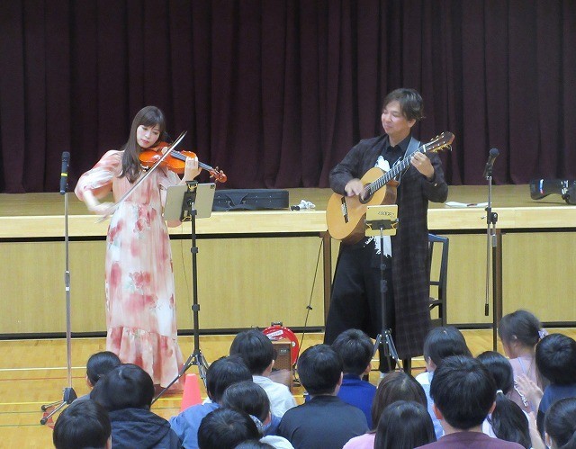 演奏していただいたのは大府市の広報大使である、バイオリニスト水野紗希さんとギタリスト山下俊輔さんです。