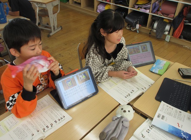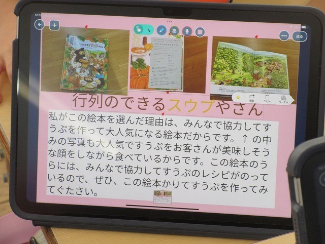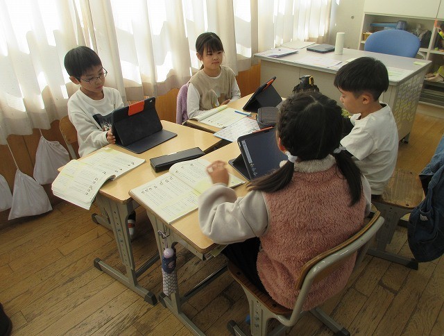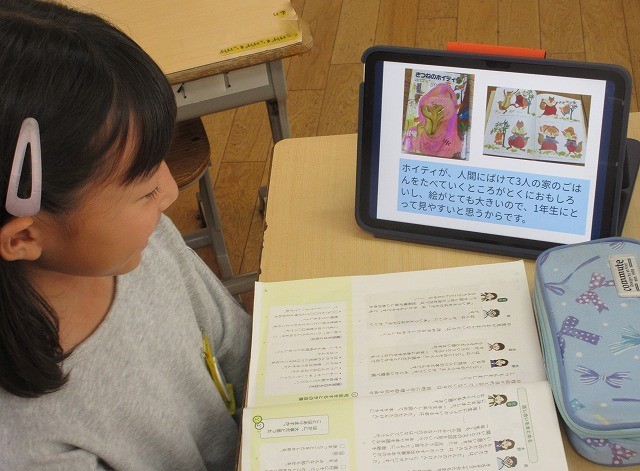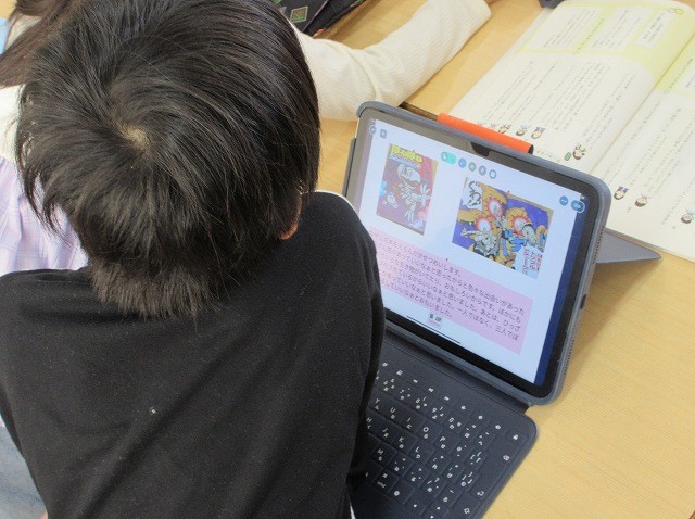 国語 3年 公開日 2025/11/04 更新日 2025/11/04 3年 3年生が国語で好きな本の紹介をしていました。1年生に自分の好きな本を紹介します。タブレットで本の挿絵やページを入れて、わかりやすく紹介します。まずはグループ内で紹介しあい、話し合いました。ぜひ、実際に紹介してほしいです。 +3 3年生
