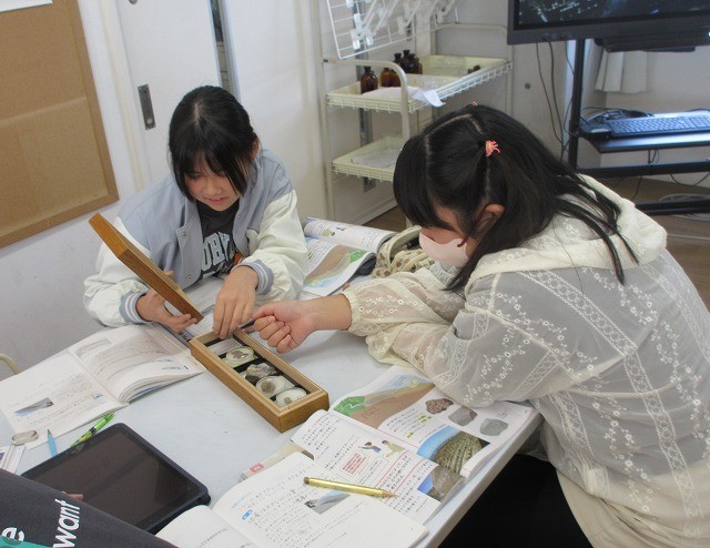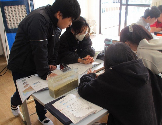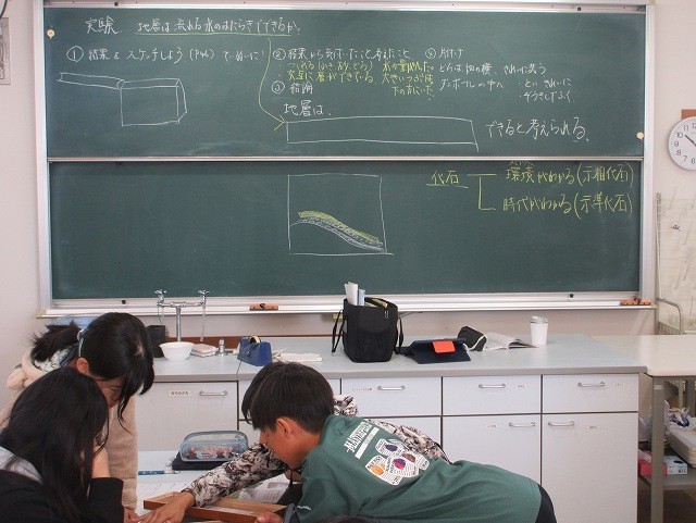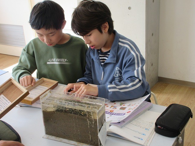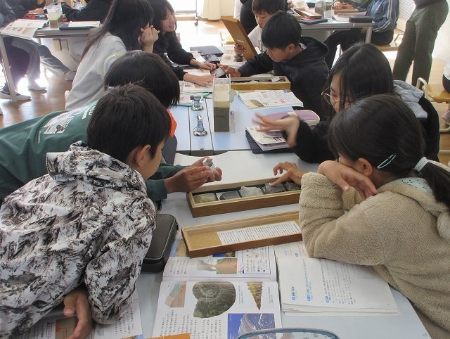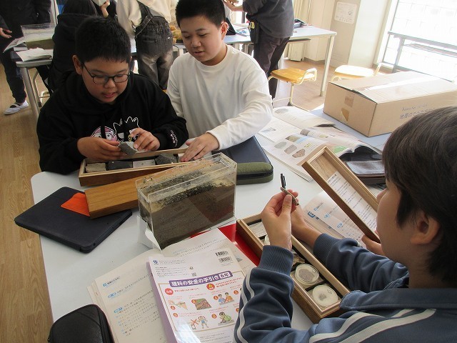 6年生が理科で地層やそこに含まれる岩石について学習していました。