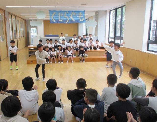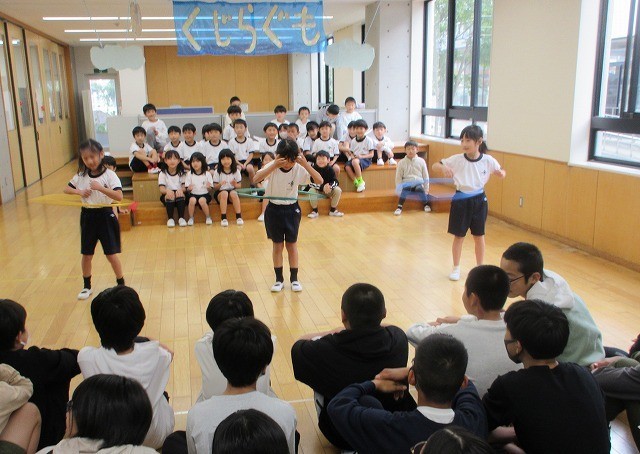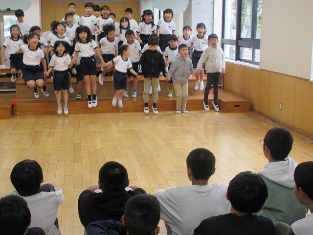 キラキラ発表会の練習 1年 公開日 2025/11/05 更新日 2025/11/05 1年 1年生がキラキラ発表会の練習をしていました。6年生に今までの練習の成果を見てもらいました。まだ少しせりふを忘れたり、つなぎのところが遅くなることもありましたが、しっかり通して行えました。本番に向けてさらに練習し、すてきな発表会にしましょう。 +4 1年生