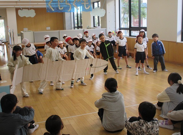 キラキラ発表会の練習 1年 公開日 2025/11/06 更新日 2025/11/06 1年 1年生が6年生にキラキラ発表会の練習を見てもらっていました。前のクラスとは別のクラスです。同じ台本で演じているのですが、それぞれのクラスで違いがありおもしろいです。踊りがみんなそろっていて、とても上手でした。本番が楽しみですね。 +6 1年生