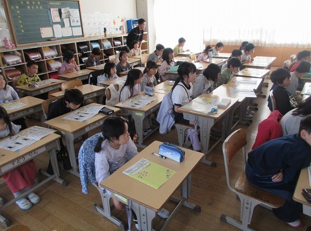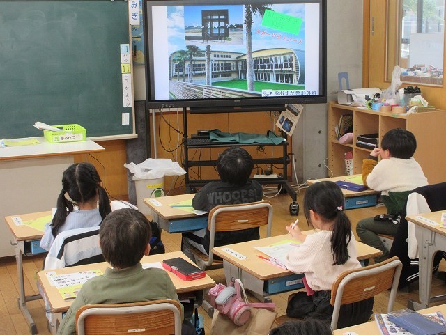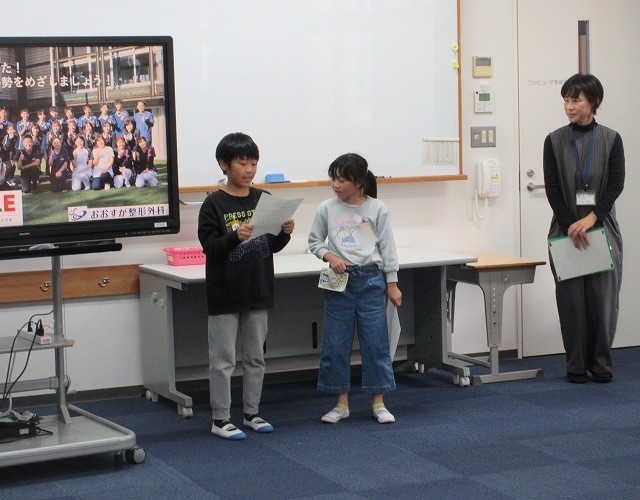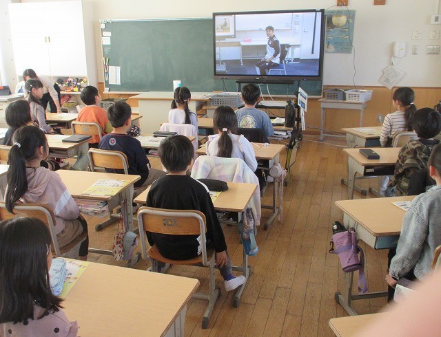 1~3年生が対象でオンラインで行い、各教室でテレビを見て話を聞きました。
