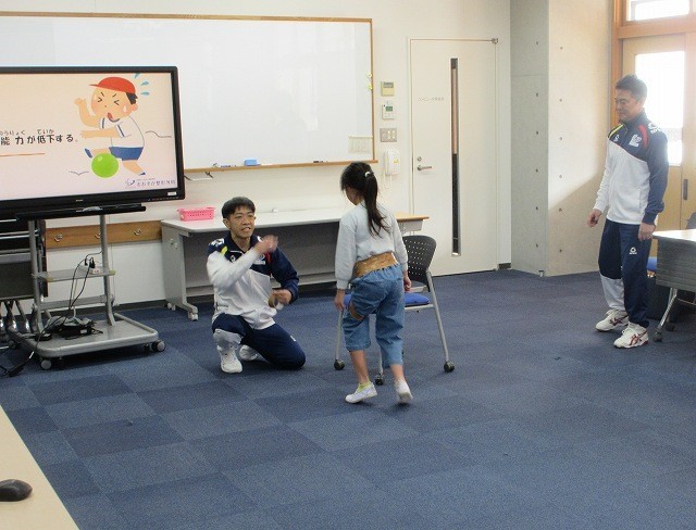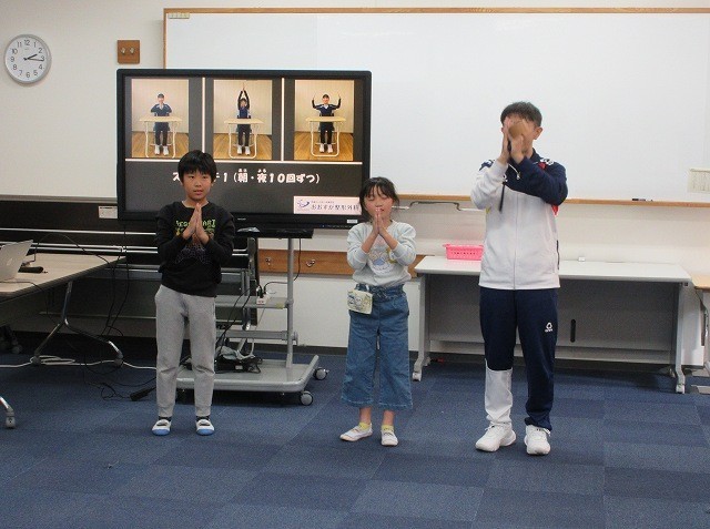 実際に教室でも姿勢の良くなるストレッチを行いました。
