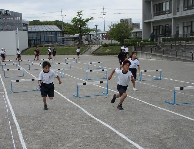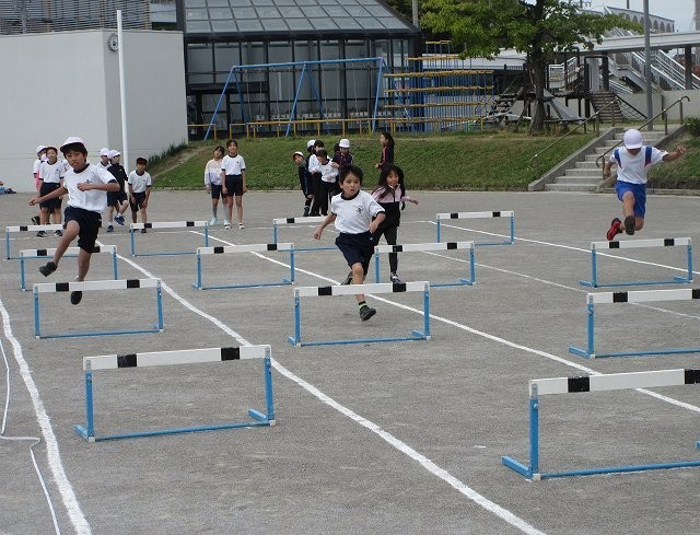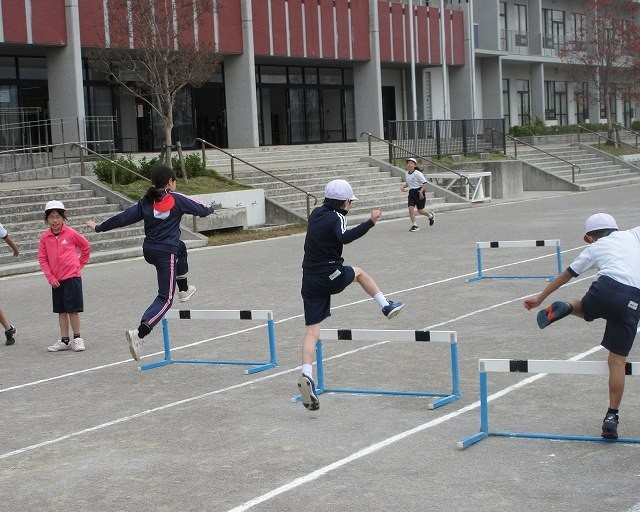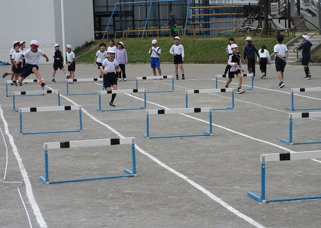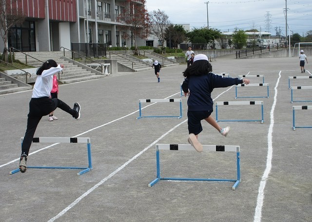 体育 4年 公開日 2025/11/12 更新日 2025/11/12 4年 4年生が体育でハードル走をしていました。ハードル間の距離を変えて跳びやすさを試したり、リズミカルに跳んだりして練習しました。最後にタイムを計測して成果をみました。上手に跳んで走ることができたかな。 +4 4年生