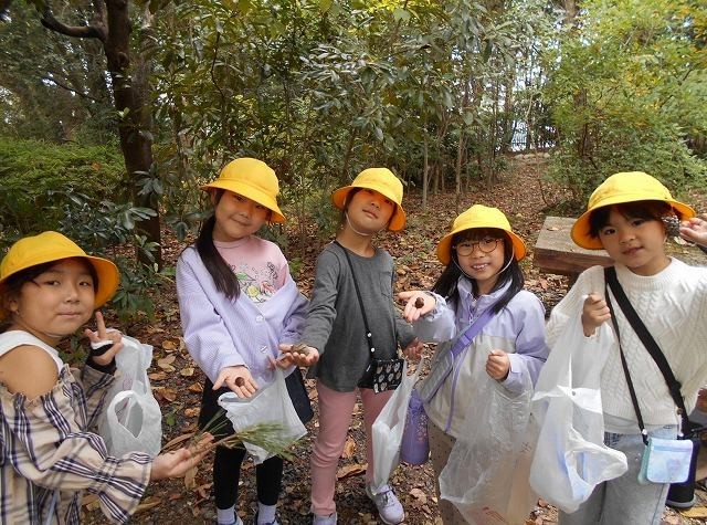 大倉公園 1年 公開日 2025/11/13 更新日 2025/11/13 1年 1年生が大倉公園へ秋を探しに行きました。落ち葉を踏みしめ、どんぐりを拾いました。秋がいっぱいの森の中で、たくさんのことを見つけたり感じたりすることができました。 +4 1年生