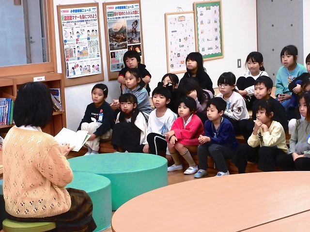 読み聞かせ 2年 公開日 2025/11/13 更新日 2025/11/13 2年 2年生が読み聞かせボランティアの方に、本を読んでもらいました。絵本を見ながら聞いたり、読んでもらった内容を想像しながら聞いたりしました。みんなお話に引き込まれて、集中して聞くことができました。紹介してもらった本も読んでみましょう。 +1 2年生