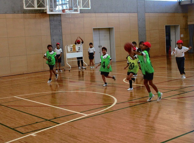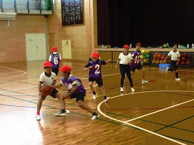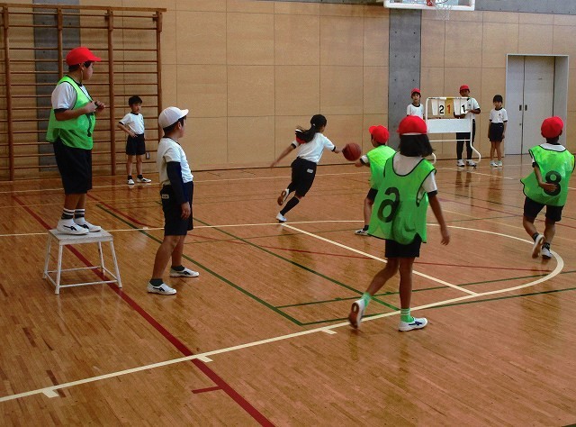 ゲームでは、素早いドリブルやシュートを打ち得点をねらいました。
