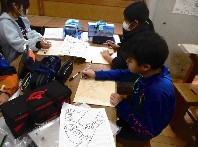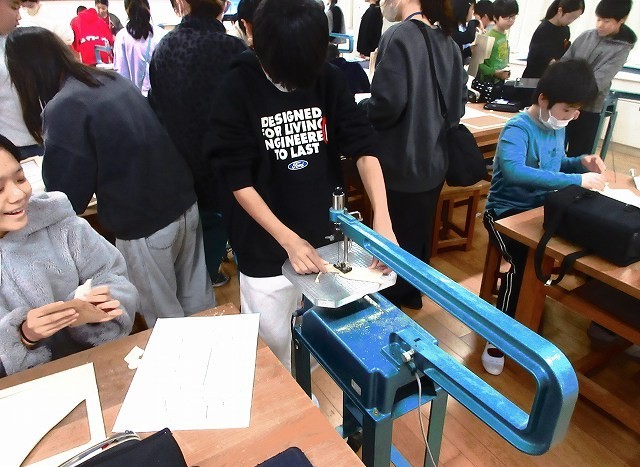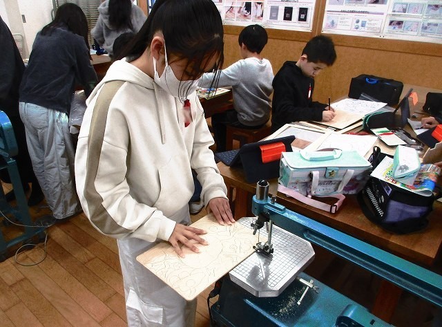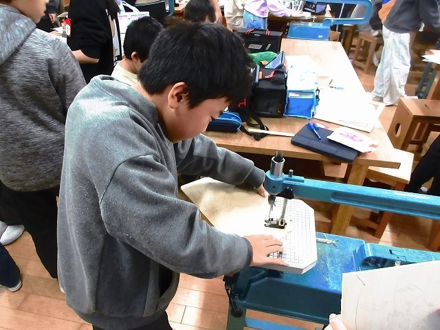 図画工作 5年 公開日 2025/11/27 更新日 2025/11/27 5年 5年生が図工でパズルを作っていました。1枚の木のパネルに下絵を描いてそれを電動糸のこで切ります。みんな慎重に切っていました。その断面を磨いてきれいにして彩色してパズルを作ります。出来上がりが楽しみですね。 +5 5年生