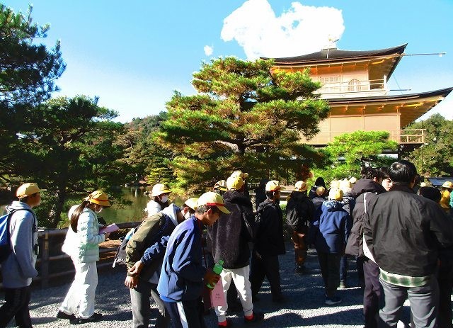 まずは金閣寺を見学しました。非常にたくさんの観光客がいました。