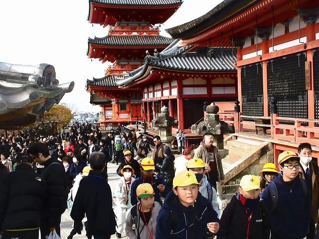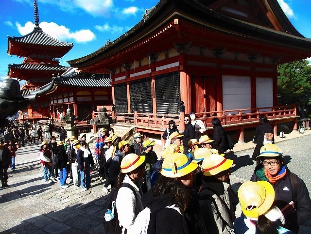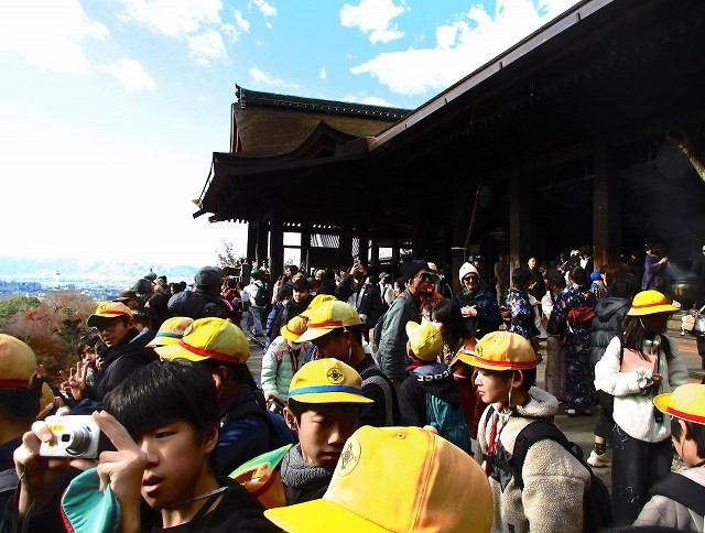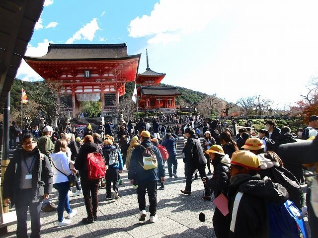 最後に清水寺へ行きました。寺の境内も参道の坂も非常に混んでいて歩くのもたいへんでした。
