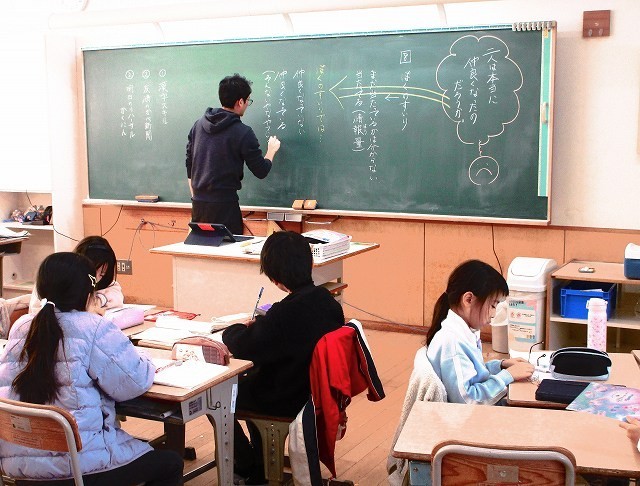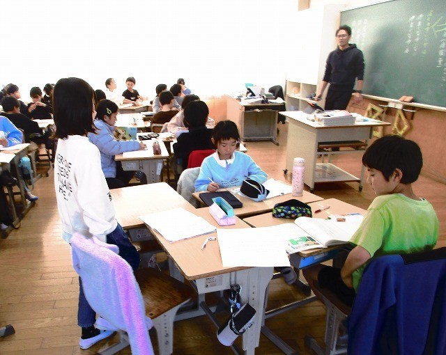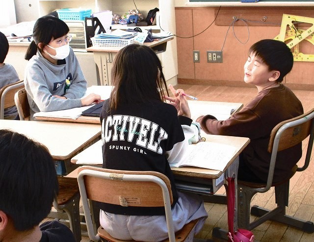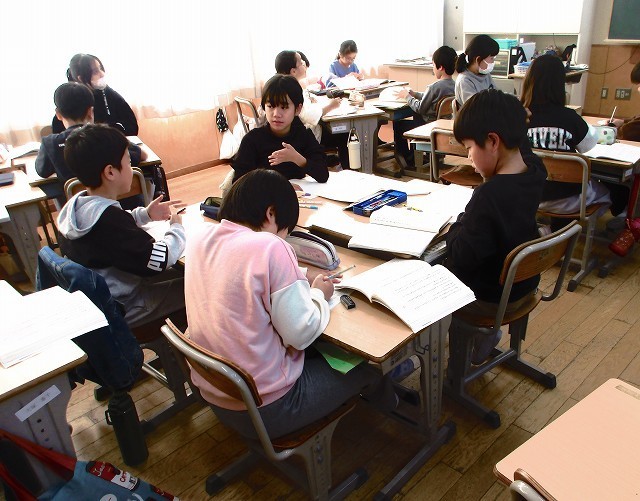 国語 4年 公開日 2025/12/11 更新日 2025/12/11 4年 4年生が国語で文章の読み取りをしていました。グループを作り、話し合いながら考えを交換していました。「しかし」や「それで」という言葉をうまく使いながら、話すことができていました。自分の意見をしっかり言えるようになるといいですね。 +2 4年生