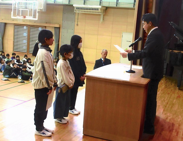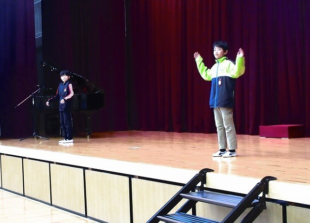 1、3、5年の代表の人が2学期を振り返り発表をしてくれました。