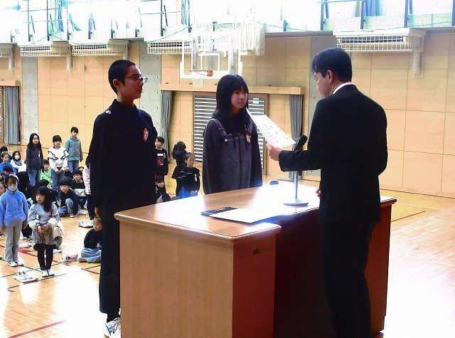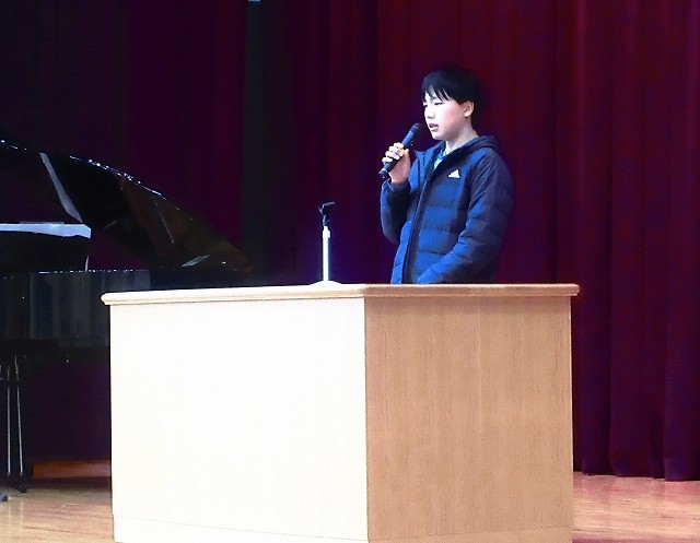 2・4・6年の代表の人が2学期に頑張ったことと、3学期に向けての抱負を言ってくれました。