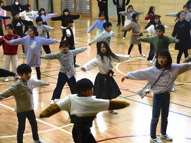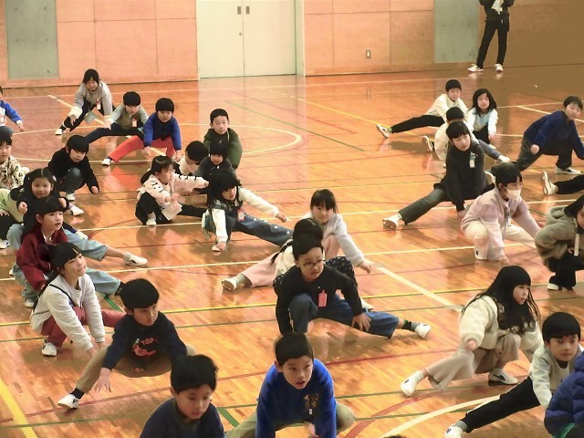 体育委員会企画 1年・2年 公開日 2026/01/14 更新日 2026/01/14 1年 インフルエンザの影響の延期されていた体育委員会の企画「やってみよう体操KINGの学年はどこだ?!」が開催されました。大放課に5年と6年の対決があったのに続き、昼放課には1年生VS2年生が行われました。どちらの学年ものびのびと元気に体操ができました。明日は3年VS4年と代表学年対決が行われます。楽しみにしています。 +2 1年生