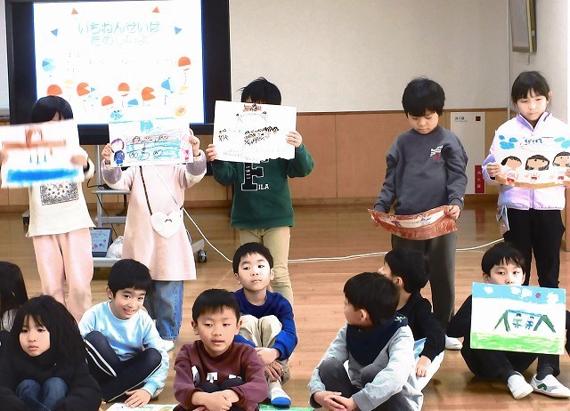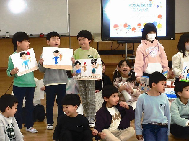 その間、1年生が新1年生に「いちねんせいはたのしいよ」の会をしてくれました。