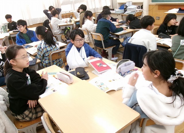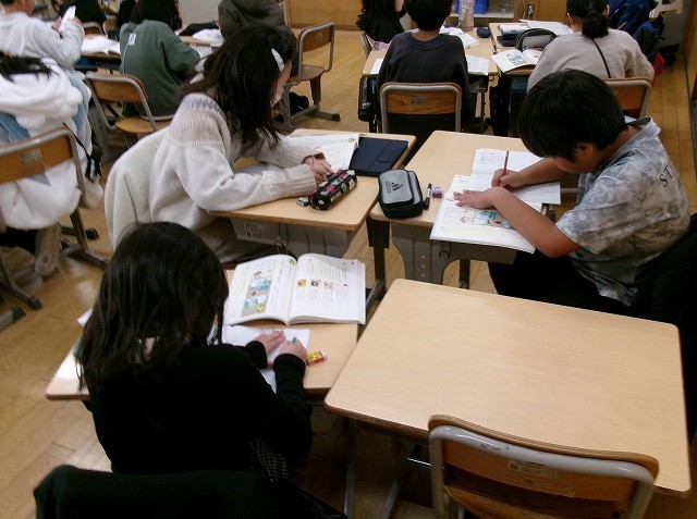 国語 4年 公開日 2026/01/29 更新日 2026/01/29 4年 4年生が国語で、正しく内容を相手に伝える文章の書き方について学習しました。教科書の例文についてグループで話し合い、正しい内容を伝えるためにはどうすれば良いかを考えました。最後にみんなで、意見を出し合い句読点の付け方や、よりよくわかる内容の伝え方についてまとめました。ちょっとしたことで文章の意味が変わる日本語の難しさと面白さを学習できました。 +3 4年生