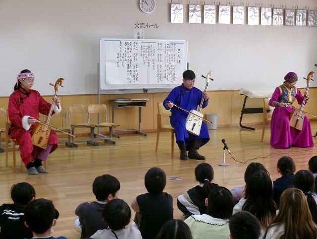 馬頭琴というチェロのような弾き方をする楽器の演奏を聴かせていただきました。