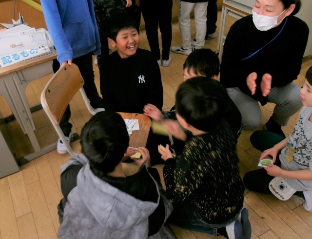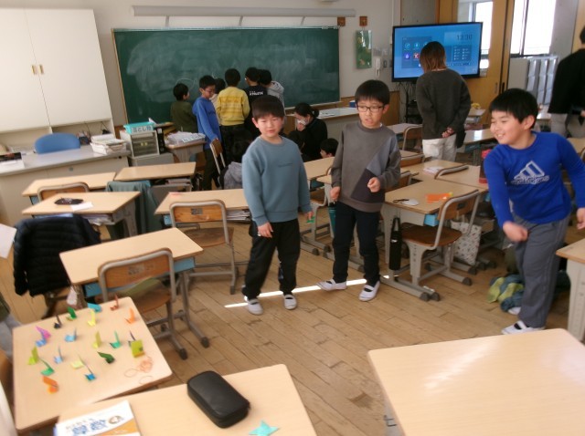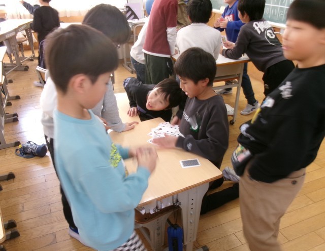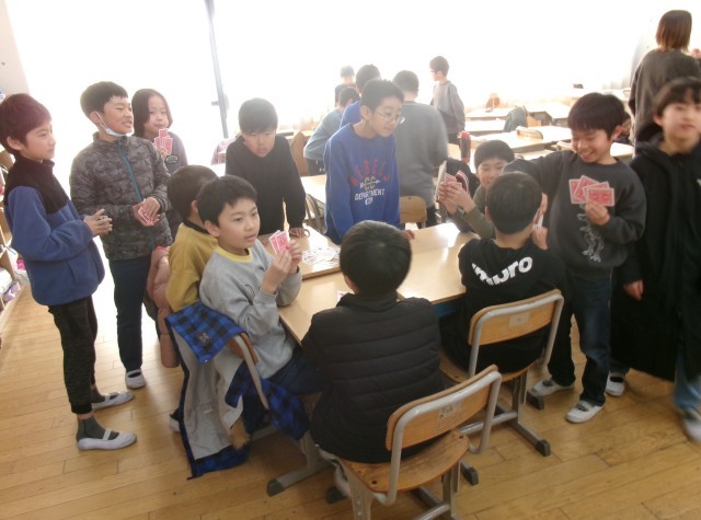 ペアタイム② 3年・4年 公開日 2026/02/04 更新日 2026/02/04 お知らせ 3年と4年がペアを組んで教室で遊びました。ボーリングやカードゲーム、折り紙などでつくったオリジナルのゲームなど、いろいろな遊びをしました。学年が近いせいか仲の良い同級生のように楽しんで遊んでいました。 +6 お知らせ